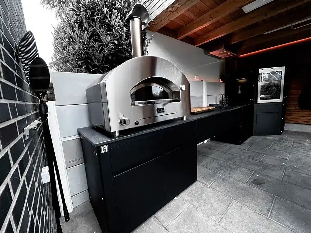 The 2 Pizze oven from Alfa’s Futuro line stands out for its folded and entirely hand-crafted stainless steel arch that blends perfectly with the design of contemporary outdoor kitchens.