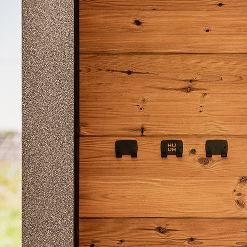 The OVO Design Towel Hook Set by HUUM comes with three metal hooks that are powder-coated in black. These towel hooks create an elegant and seamless way to hang towels, robes, or other essentials within your sauna room or bathroom space.
