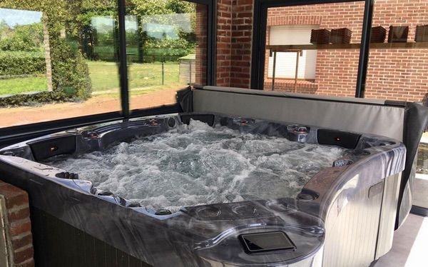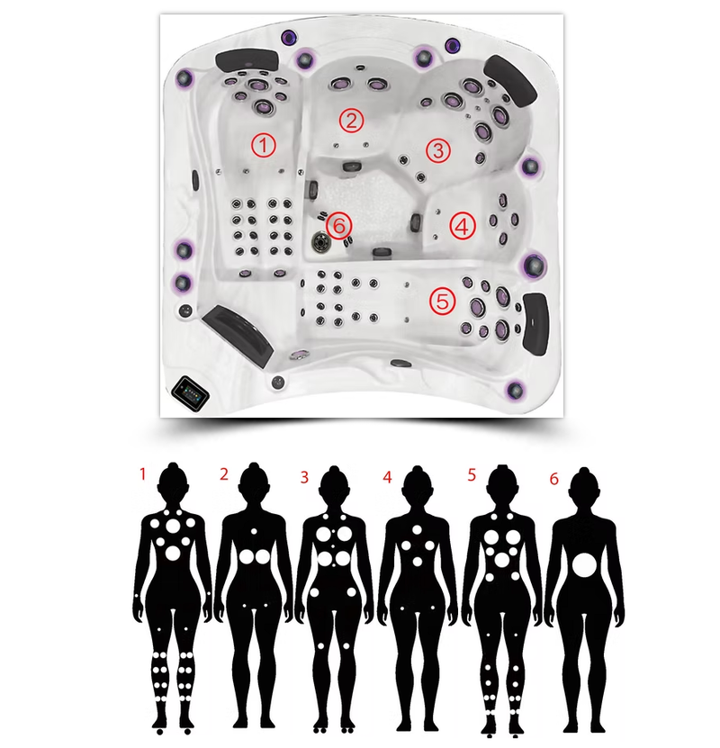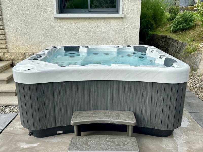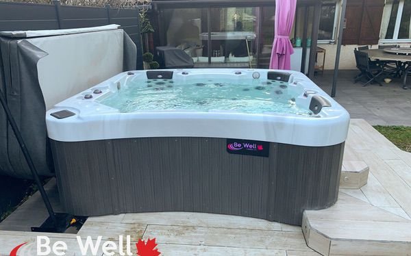 The Executive 585 Hot Tub from Be Well Canada Spas is the most powerful spa we carry. With 5 seats, including 2 loungers, and 3 huge pumps that power 85 jets, plus oversized plumbing – it pumps hard! This top tier tub doesn’t have any options, because they’re all included, including 4 speaker audio, wifi control, touch screen, all the jets, all the pumps, and even convenience controls in one of the lounger, so you can turn off any of the pumps and the lights from the comfort of your chair. The Executive line, also comes with a 5 year comprehensive warranty, so if anything needs attention, just give Backyard Canada a call. Reflective thermal barrier perimeter insulation makes this beautiful tub, easy to service, and it’s inspiring curves will have your friends and neighbours gawking at its beauty.