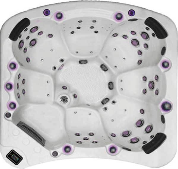The Executive 770 Hot Tub from Be Well Canada Spas is the most powerful spa we carry. With 7 seats, 3 huge pumps and 70 jets, plus oversized plumbing – it pumps hard! This top tier tub doesn’t have any options, because they’re all included, including 4 speaker audio, wifi control, touch screen, all the jets, all the pumps, plus the incredible volcano jet. The Executive line, also comes with a 5 year comprehensive warranty, so if anything needs attention, just give Backyard Canada a call. Reflective thermal barrier perimeter insulation makes this beautiful tub, easy to service, and it’s inspiring curves will have your friends and neighbours gawking at its beauty.