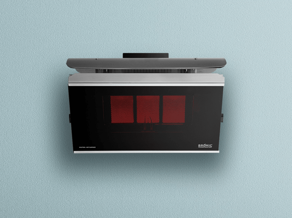 Add style and warmth to your patio, with Bromic’s Platinum Gas range. This powerful heater combines elegant design with industry-leading technology. With its signature ceramic fascia in a sleek black finish, the Bromic Platinum Gas will not only look great on your wall or ceiling, but will also quickly project radiant heat deep into your outdoor area, up to 215 square feet, while adding an extra layer of comfort with its soft red glow. The Platinum Gas series successfully overcomes winds of up to 12mph, keeping you and your guests warm in any condition.