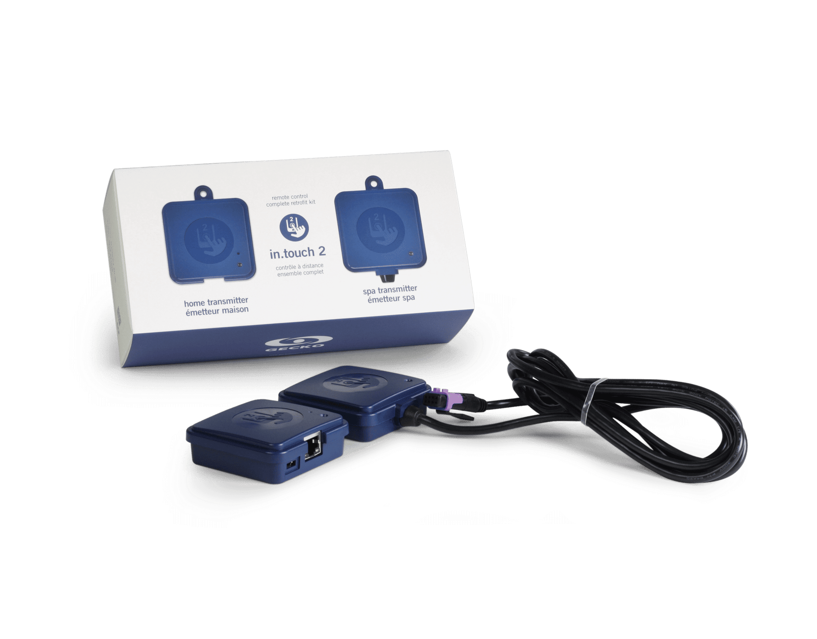 The in.touch 2 comes with a state-of-the-art app and two pre-paired radio frequency transmitters: one as part of your hot tub system and the other connected to the Internet router. Both RF transmitters are pre-linked to one another, enabling immediate and perfect communication through our proprietary RF technology. The in.touch 2 transceivers emit a strong, stable and long-range signal between hot tub and router.