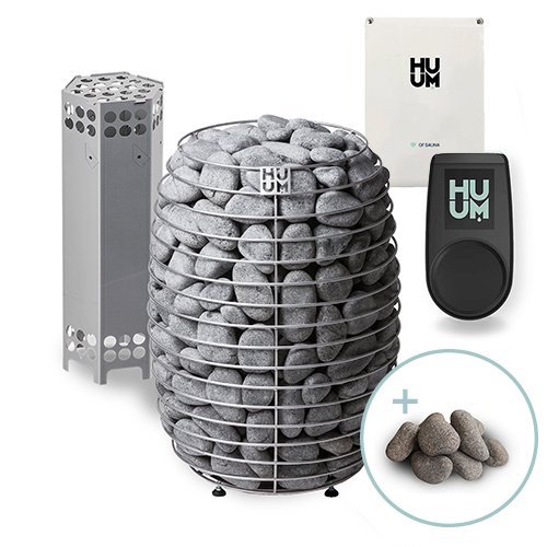 The HUUM HIVE Mini 6STU sauna heater package comes complete with the traditionally designed HIVE Mini 6kW sauna heater, UKU control (Wi-Fi optional), and sauna stones. This package has everything you need to build your dream sauna experience and has been engineered for sauna rooms from 177 to 318 cubic feet (CF).