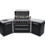 The Mont Alpi Black Stainless series offers a modern beautiful material, combining longevity with sleek and stylish. This grill combines six burners of standard cooking size along with an extremely useful infrared side burner suitable for searing, pan frying and boiling and an infrared rear burner and heavy duty rotisserie kit for the ultimate rotisserie experience. The grill comes standard with LED knob lights that are blue when off and red when on and bright internal cooking lights for perfect vision and precision control. The 45 degree angle modules offer extra prep space and a stylish statement, perfect for patios and yards with corners.