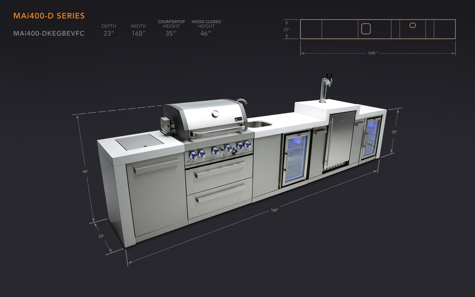 Mont Alpi 400 Deluxe Island with a Kegerator, Beverage Center and Fridge Cabinet