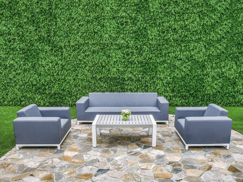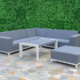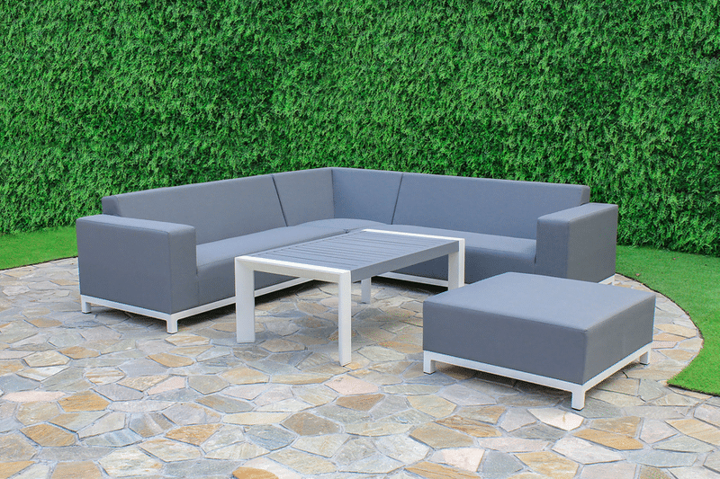 The Arizona Collection has a White Powder Coated Aluminum Frame with DarkGrey Textile Sling. The cushions are made from QuickDry Foam. Posted price includes the 3 Seater Sofa, 2 Lounge Chairs and Coffee Table.