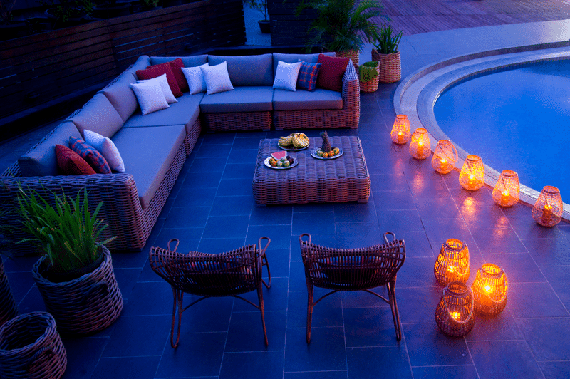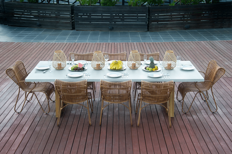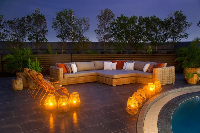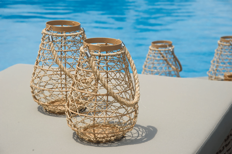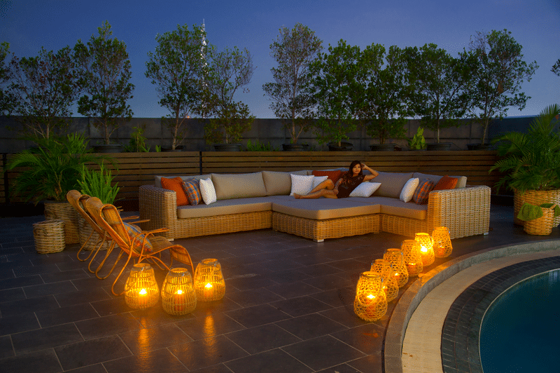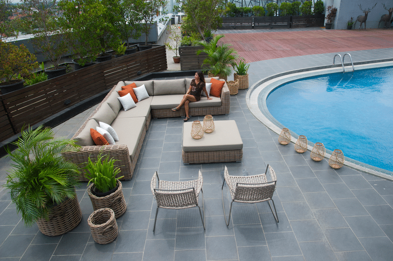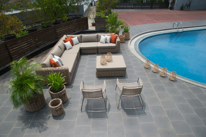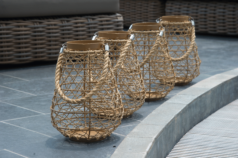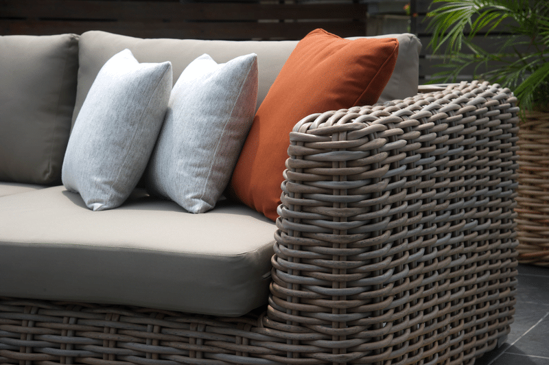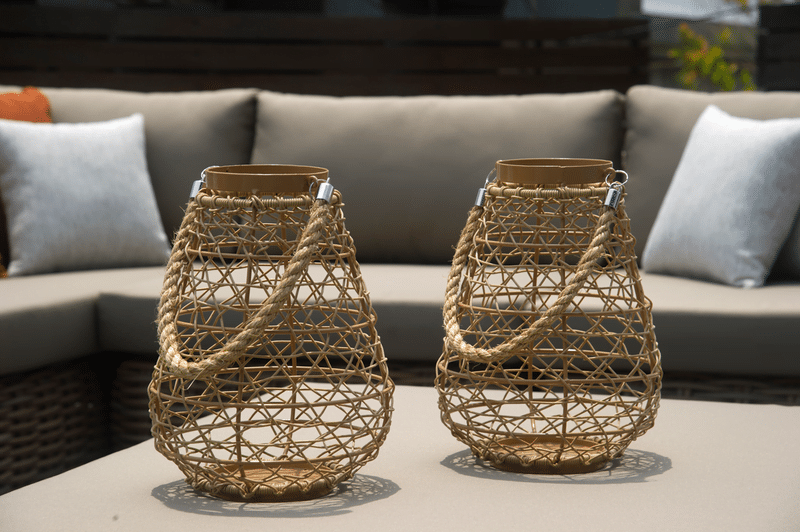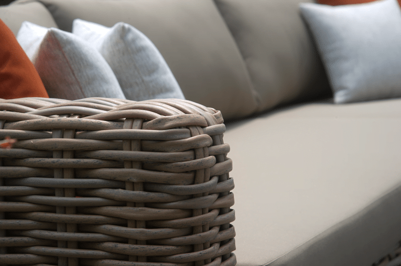 The St. Tropez Collection uses a wide rustic weave in natural tones for a stunning outdoor set. Posted price includes Right Arm Sofa, Left Arm Sofa, Corner Element, Middle Element and Footstool.