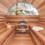 Add an amazing half moon window in the back wall of the sauna. This option allows you to still mount the heater on the back wall for maximum clearance and even heating.
