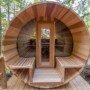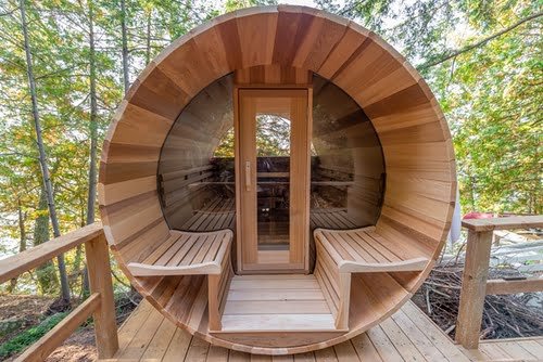Add a 2 amazing half moon windows in the front wall of the sauna. This option requires and includes the signature bench upgrade. If your view is toward the door this is the perfect option, while also taking the appeal of the barrel sauna to the next level. Only available with the purchase of a sauna.