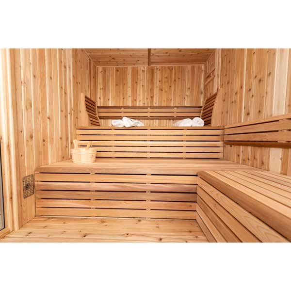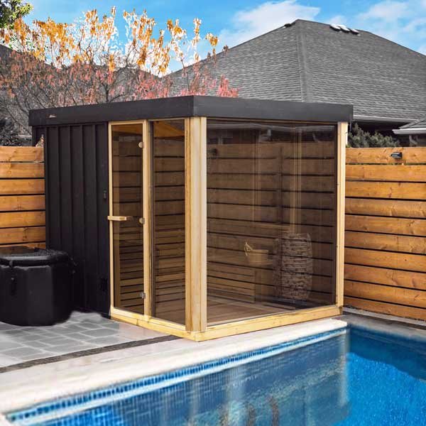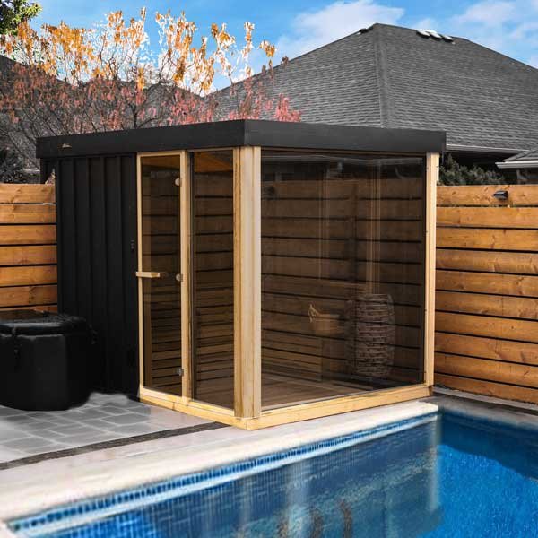 Wow! Is the only way to the Orion for the Pure Cube Black Collection! If you have an amazing view, you must get this sauna! With 180 Degrees of Glass, your view is limitless. All while being easy to maintain thanks to the black metal exterior, optional insulation, and lifetime EPDM roof membrane. The Pure Cube Orion Sauna truly is a bathing experience like never before in a Leisurecraft Sauna, with the 180 degree view through the bronze tempered glass units you can have a sauna session and still feel like you are sitting on your dock or deck. This easy to assembly kit comes with insulated walls, roof and floor and black metal siding on the outside. Optional side wall benches and sauna accessories this model is only available with floor standing electric heaters.