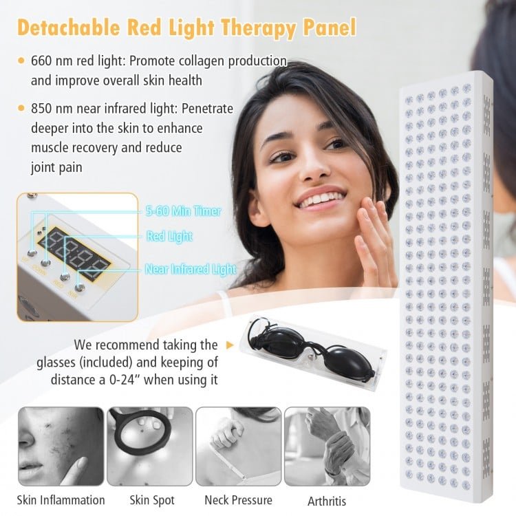 ● Functional 7-Color Therapy Light and Red Light Therapy Panel: The functional home sauna features a therapy lamp with 7 static colors and 2 dynamic lighting modes, providing added healthy benefits while creating a variety of atmospheric effects. Furthermore, there exists a detachable red light therapy panel, which provides 660 nm red light that could promote collagen production and improve overall skin health and 850 nm near infrared light that can penetrate deeper into the skin to enhance muscle recovery and reduce joint pain. (Note: We recommend taking the glasses (included) and keeping a distance of 0-60 cm/0-24″ when using it.)
