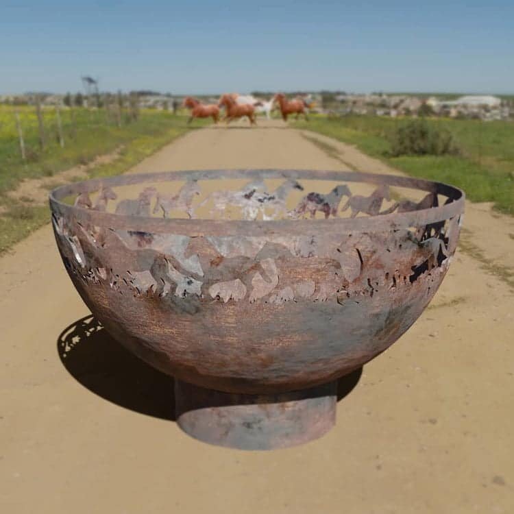 The beautiful Galloping Horses fire pit is a timeless classic design, inspired by the wild horses of North America. The classic galloping horses design inspires memories of beautiful rides across the foothills of Alberta.